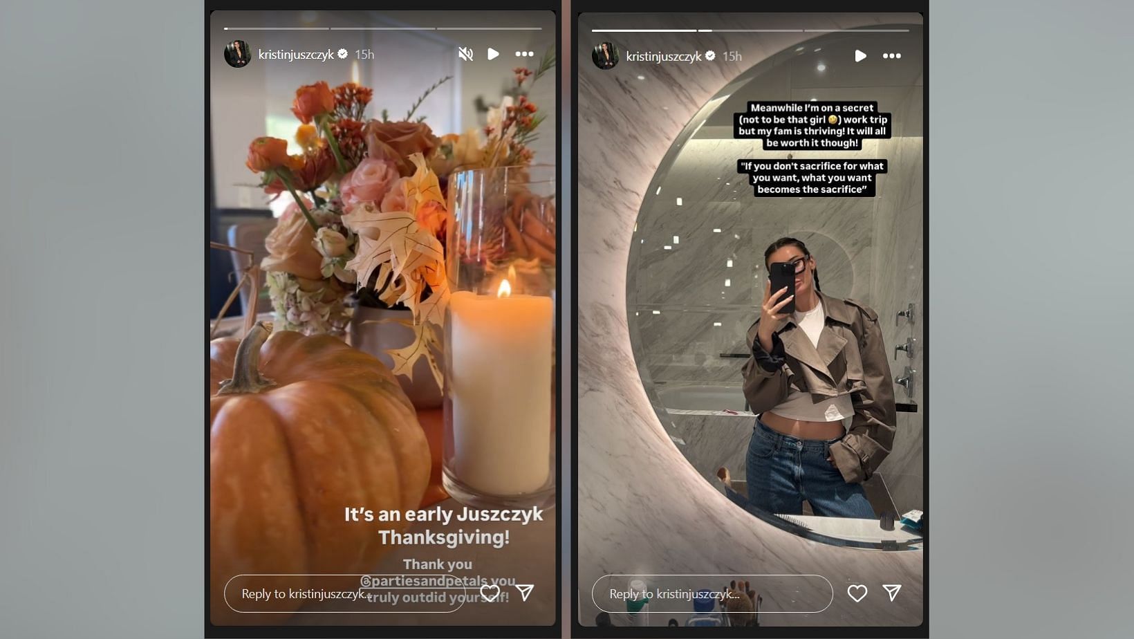 On Thursday, Kristin Juszczyk updated her Instagram story with a clip of her house highlighting the Thanksgiving decorations. Following that, Kristin shared a mirror selfie talking about her work trip. In the caption, the custom outfit designer wrote: