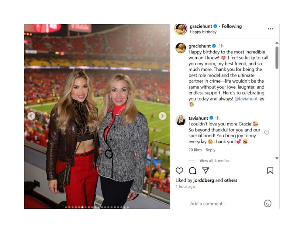 Gracie Hunt celebrated her mom, Tavia Hunt’s, 54th birthday in the sweetest way. The daughter of Kansas City Chiefs owner Clark Hunt shared a heartfelt message for her mom on Instagram on Friday, along with some beautiful photos of the two.