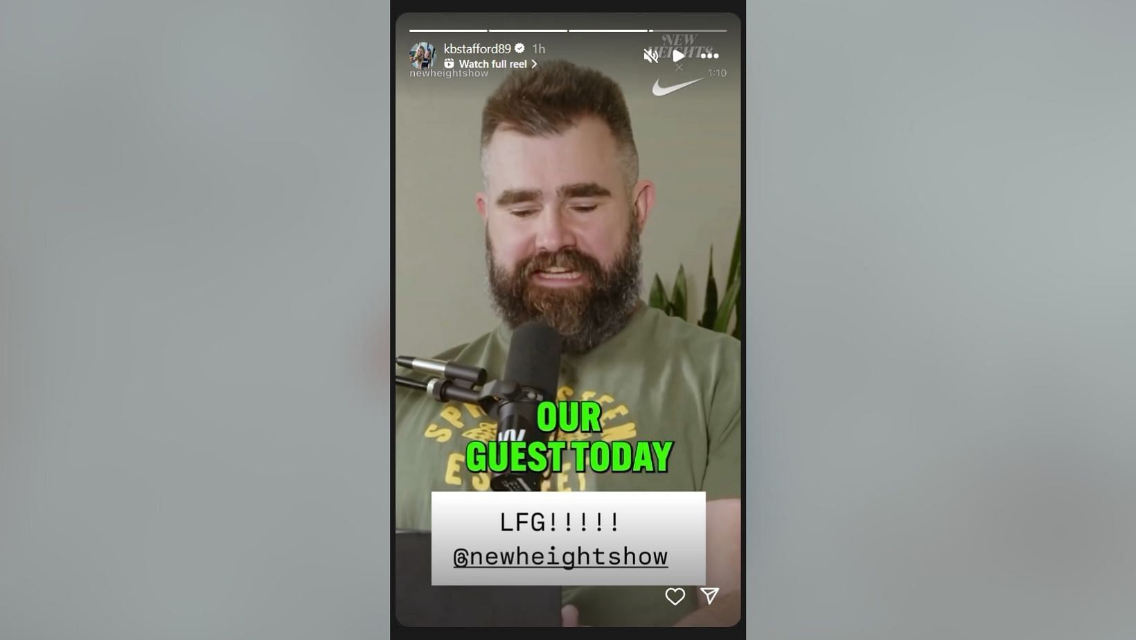 Stafford's wife Kelly was excited about the quarterback's appearance on the podcast and shared her reaction via an Instagram story.