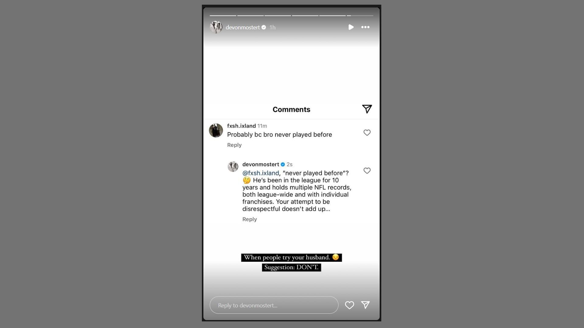 Devon then captioned the screenshot of her comment with the warning: