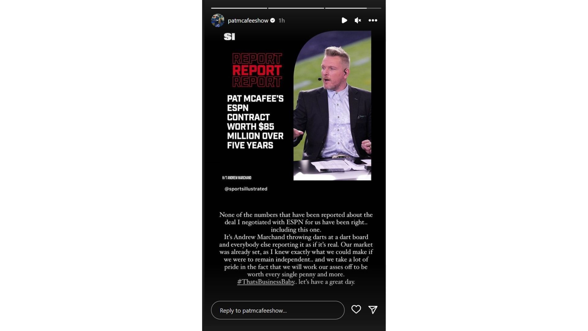 The report claimed McAfee will earn $85 million over five years with ESPN. Considering his $120 million contract with FanDuel, the new deal would technically be a pay cut for McAfee.