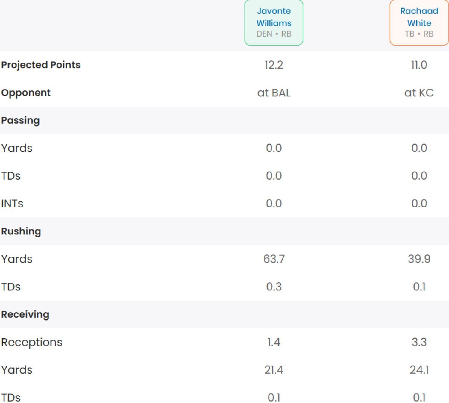 Whom should I start between Rachaad White and Javonte Williams?