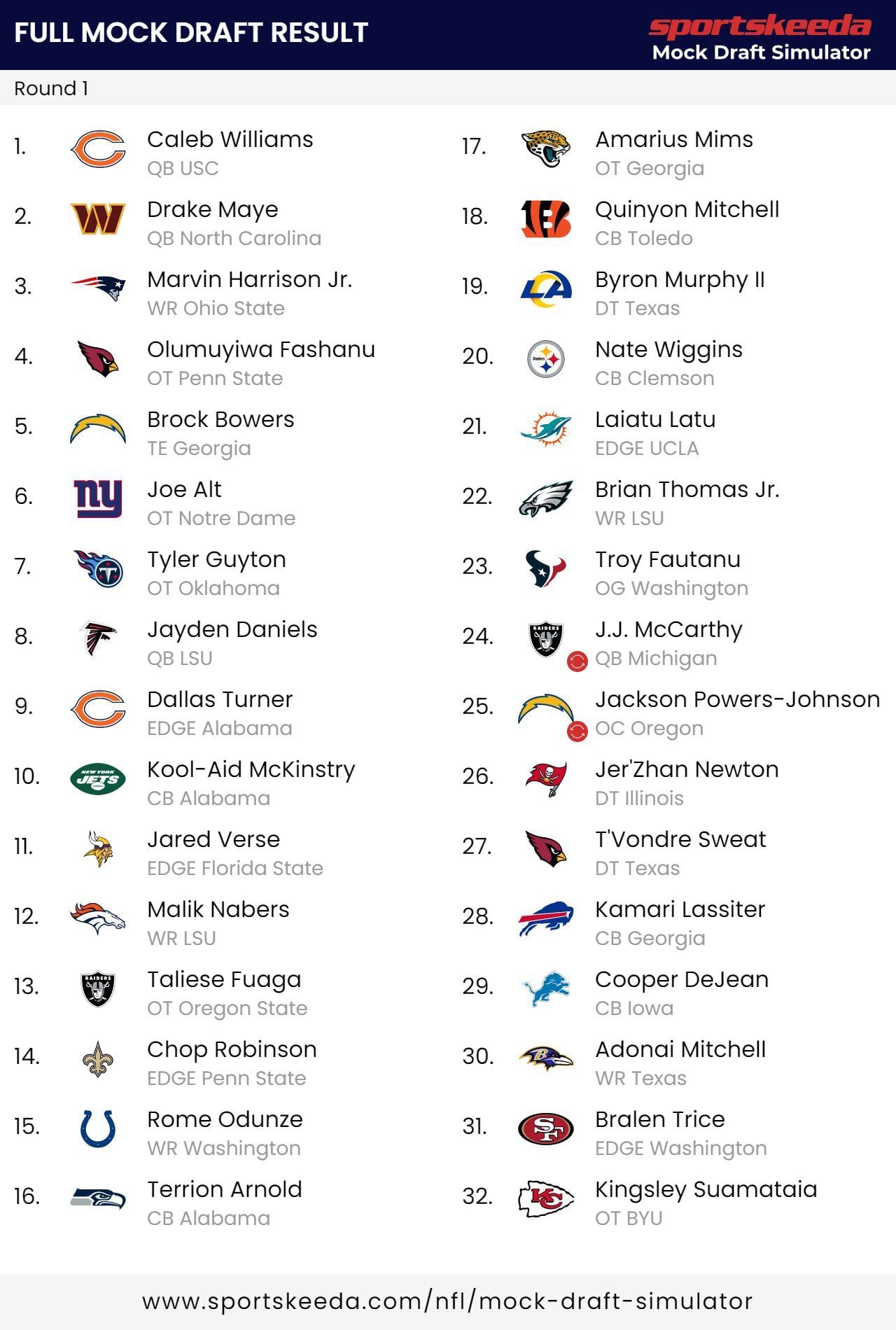 Sportskeeda's Mock Draft Simulator, meanwhile, praised Nabers for his route running. One simulation projected Malik Nabers landing in Denver at #12 with Rome Odunze falling to the Colts at #15.