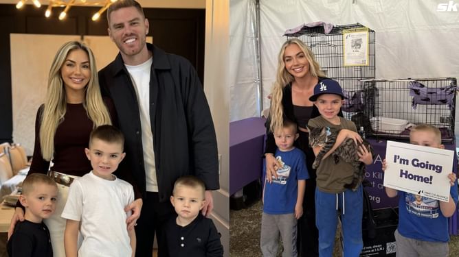 "He sleeps next to Charlie every night" - Freddie Freeman's wife Chelsea gushes over son bonding with 'sweetest' family cat Champ