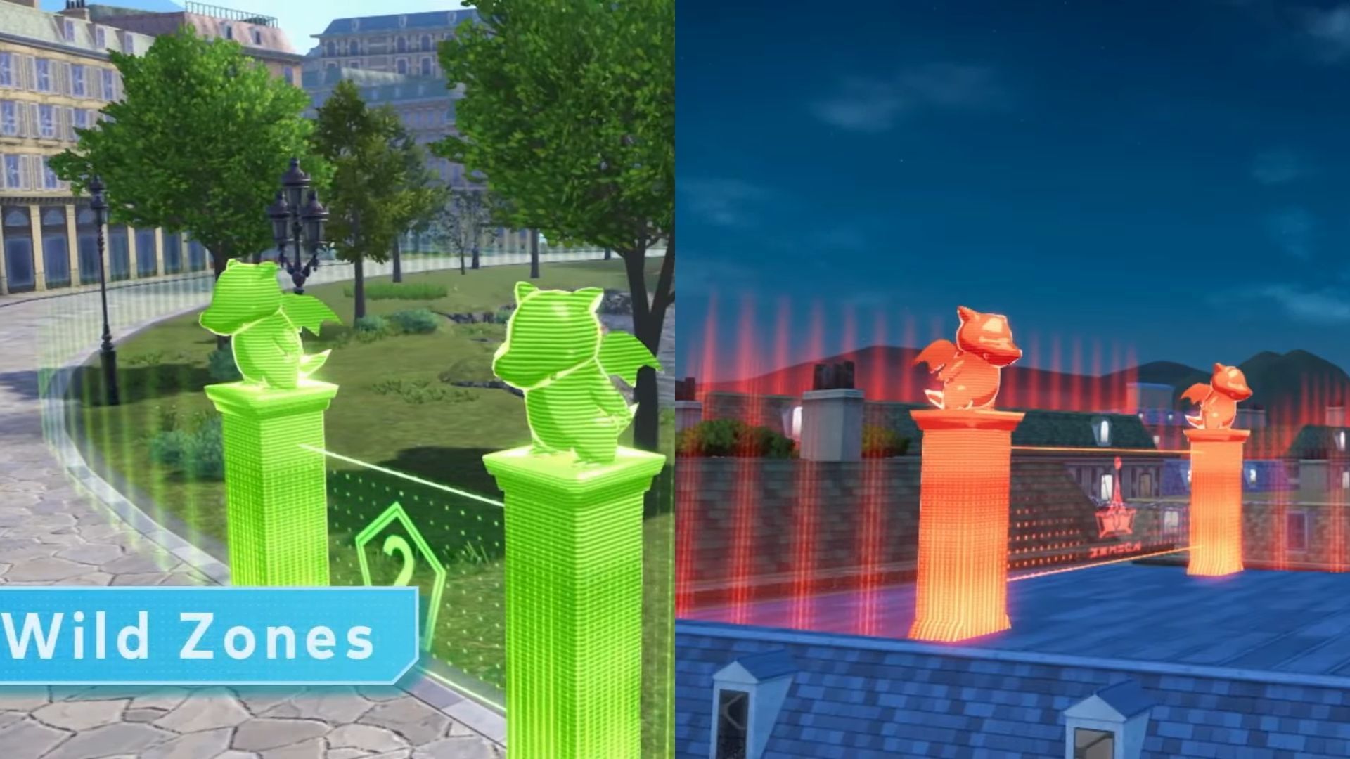 Lumiose City is the main hub area for players, filled with humans and Pokemon. While Wild Zones provide a natural environment within the city, it is also possible to encounter wild Pokemon outside of them, even on top of buildings.