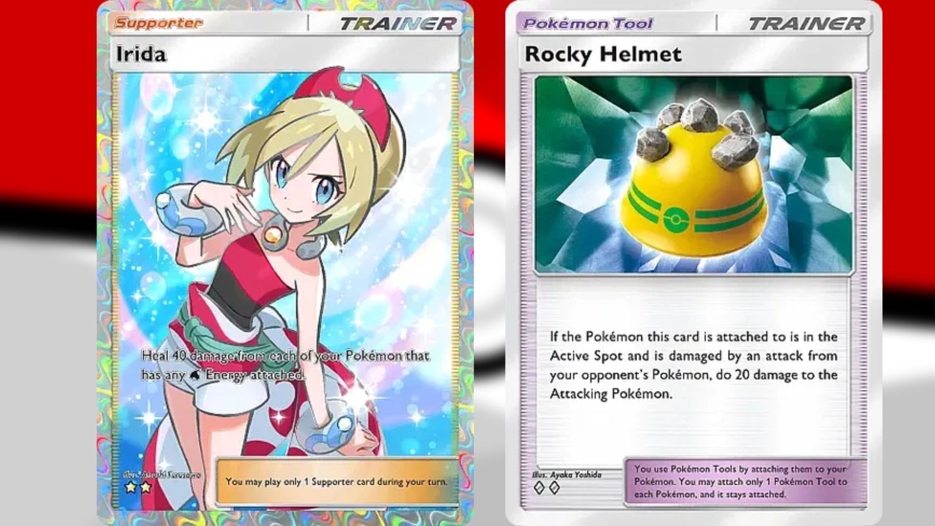 - Irida: This Supporter card provides the best healing in this game - 40 HP as long as the Pokemon has a Water Energy attached. As a result, this deck runs Water Energy. However, this isn't an issue as all the Pokemon in this deck need Colorless Energy to attack, whose need can be fulfilled by any form of Energy.