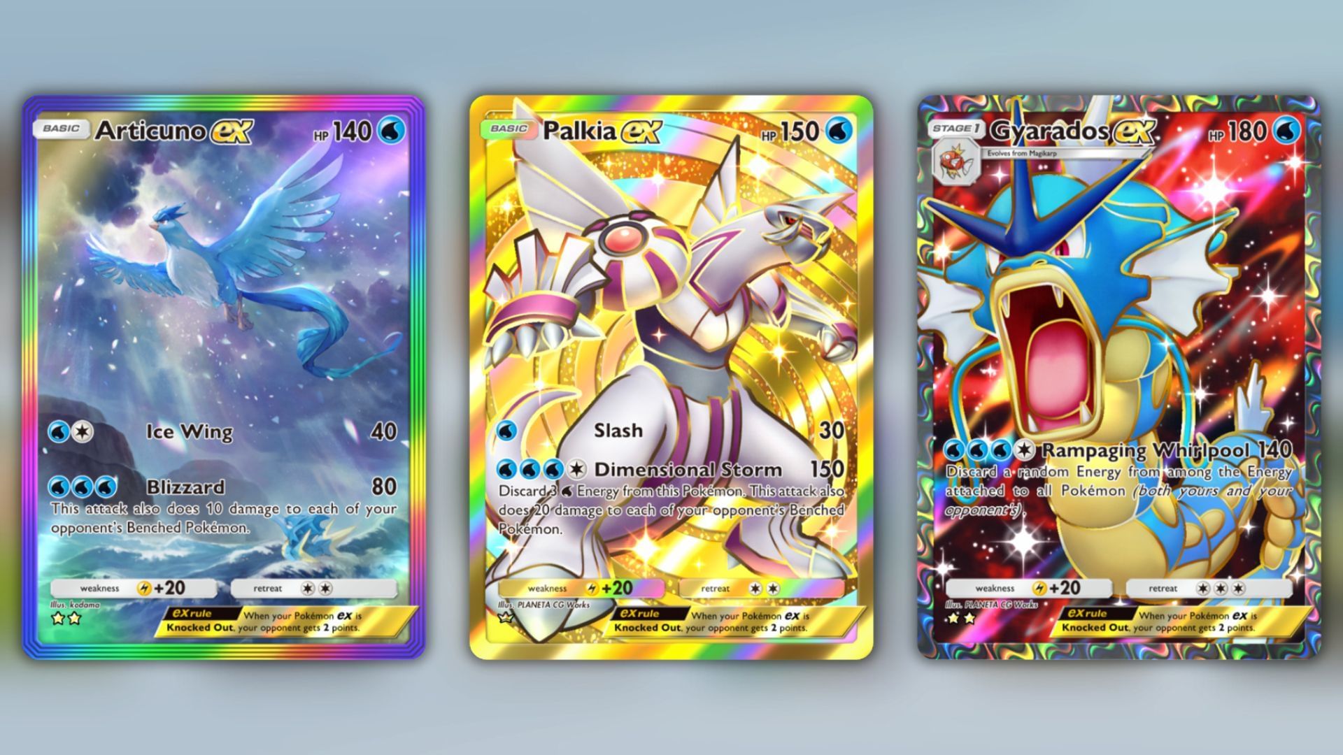 Later releases only strengthened Water’s presence. Lapras ex, Glaceon ex, and Wugtrio ex cater to specific playstyles and preferences, while Gyarados ex from Mythical Island and Palkia ex from Space-Time Smackdown pushed the limits of what Water decks can do. These cards boast powerful attacks, great synergy, and durable stats, giving Water decks a consistent edge.