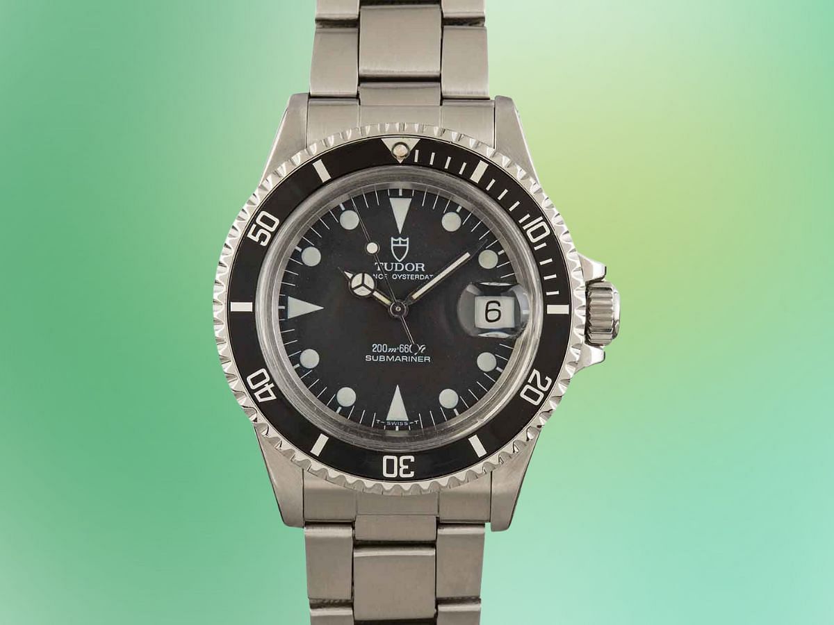 The 1990s Tudor Submariner is offered in only two versions which are the blue and the black dial options. This watch falls under the category of the latter and features a stainless steel case with a black bidirectional bezel, a black dial with white hour markers and matching hands.