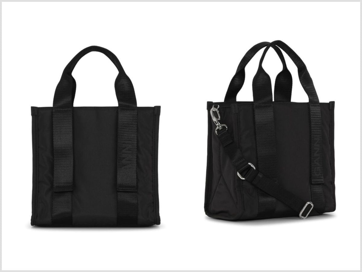 The Small Black Tech Tote is marked with a selling price label of $255. They are being sold via GANNI’s online store.