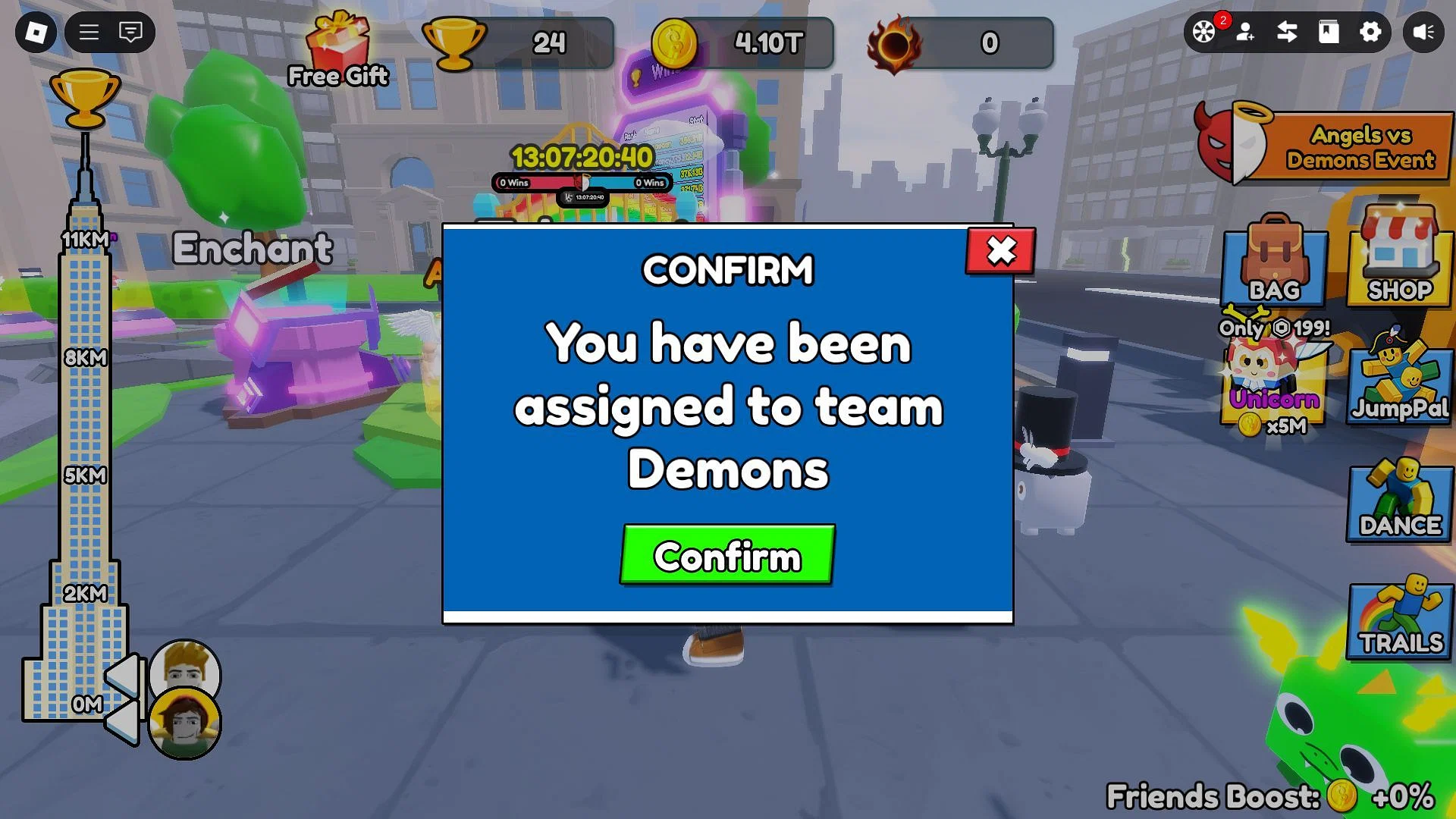 The Angels vs Demons event is accessible to anyone who has unlocked World 2. Simply head over to the teleporter and interact with it to spawn on the event world. Here, you can climb a special event-specific tower that is separate from the progression of the main game. You don’t have access to any of your Pets or Wings from the base game.
