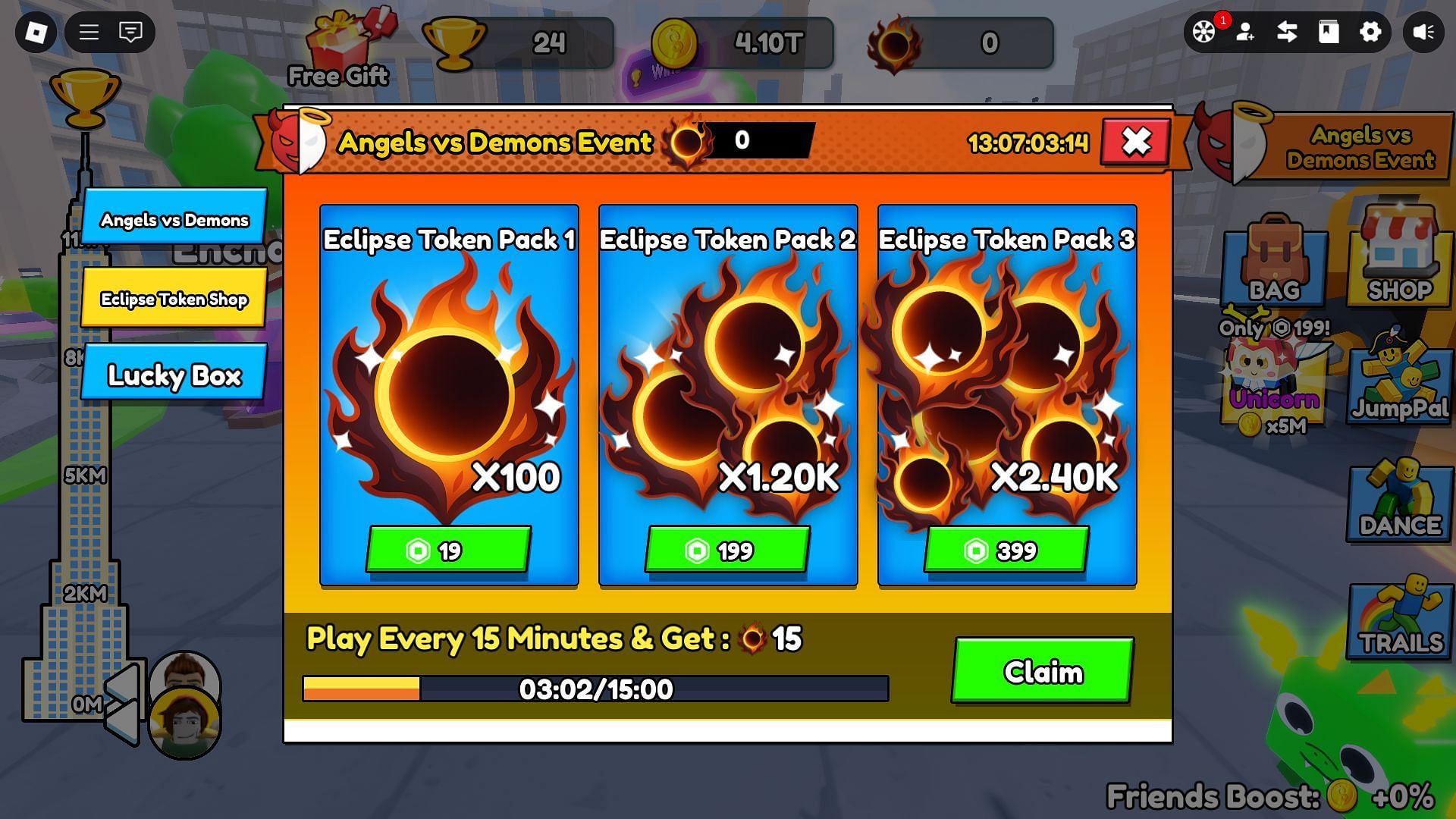 How can I get Eclipse Tokens in Climb and Jump Tower Angels vs Demons event?