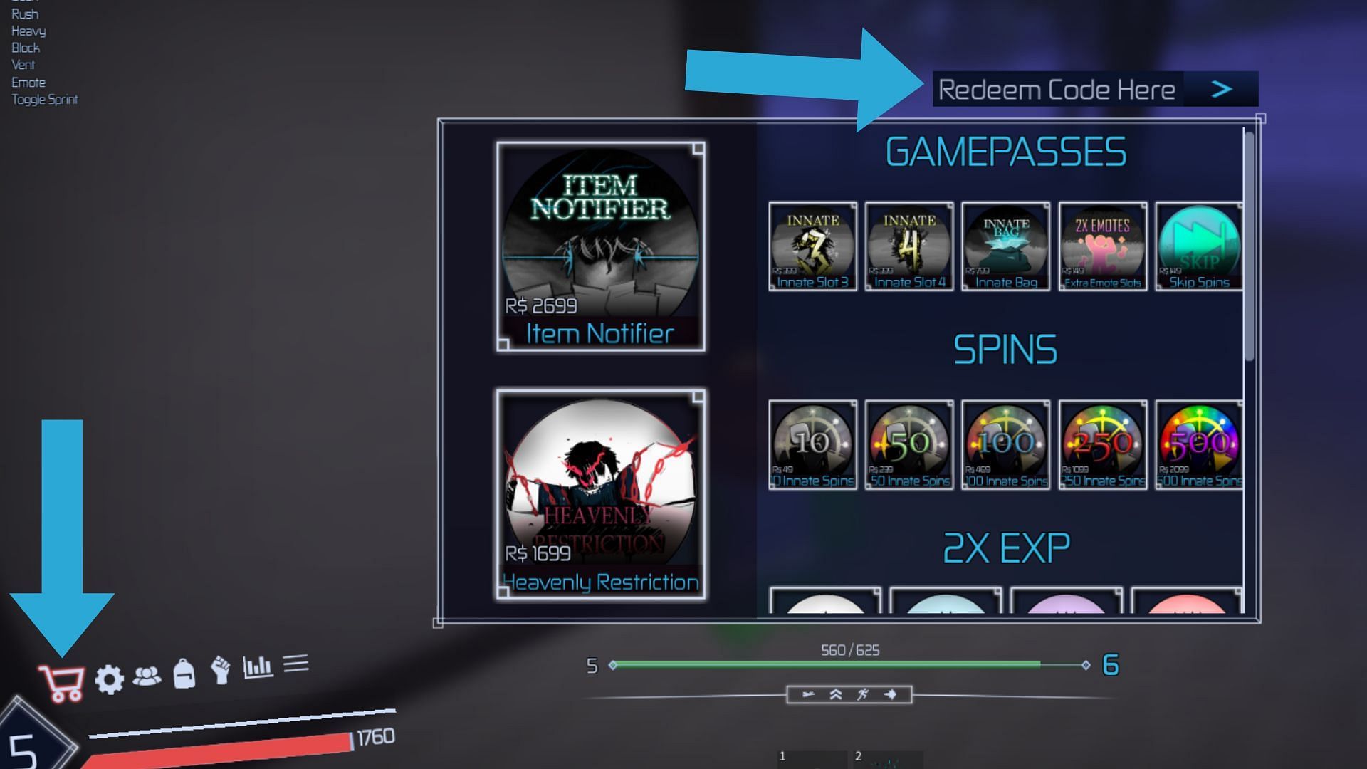 - Once you spawn on the server, press the Cart icon above your level bar. This will make the shop interface pop up.