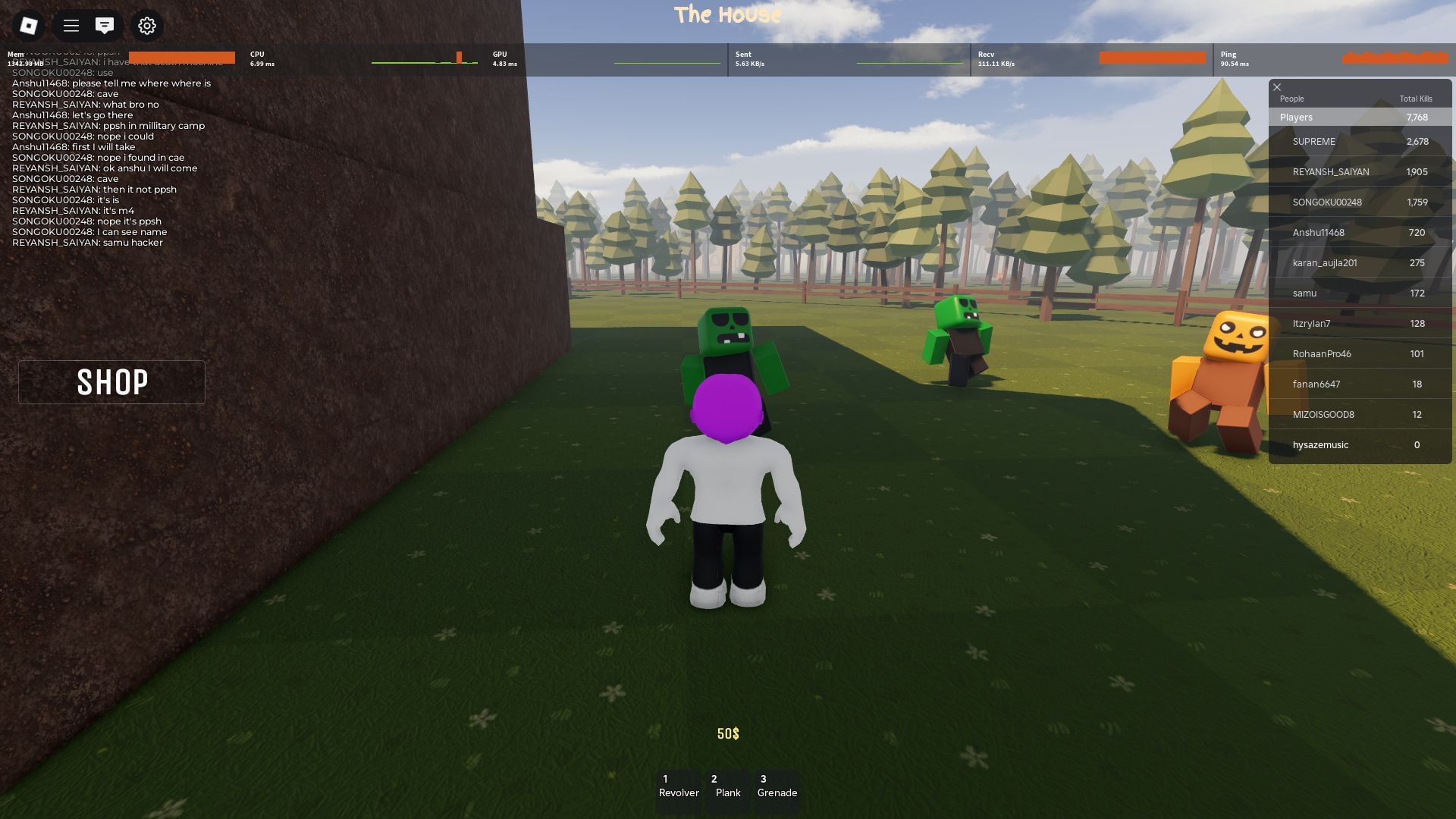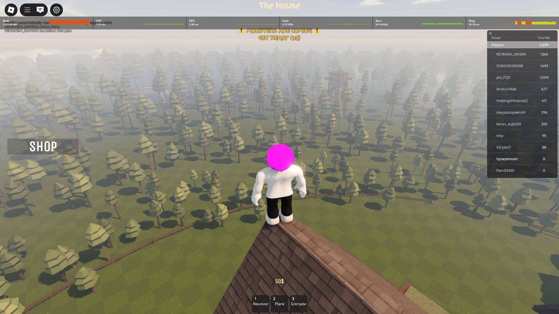 All players in the lobby start in the middle of a large mansion. Your goal is quite simple: Keep killing the monsters and don't let them enter the house. You get 59 seconds to prepare before the wave starts, and it will not stop until a lot of monsters are already inside the mansion.