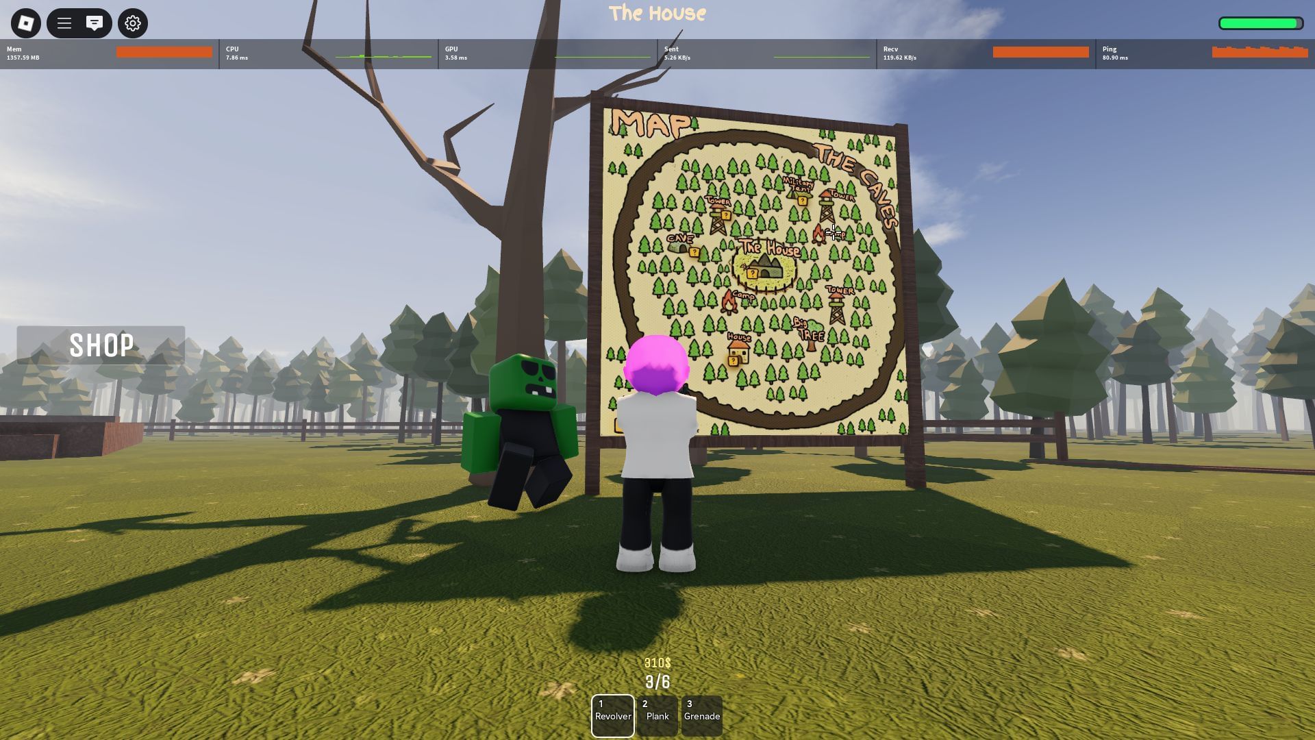 There are also in-game shops available inside and outside, but they are not that useful separately, as all the purchasable items are always accessible from the menu on the left side of the screen. You can also find Mystery Boxes across the mansion and forest that unlock new weapons. However, they do not grant any free items and simply make new weapons purchasable.