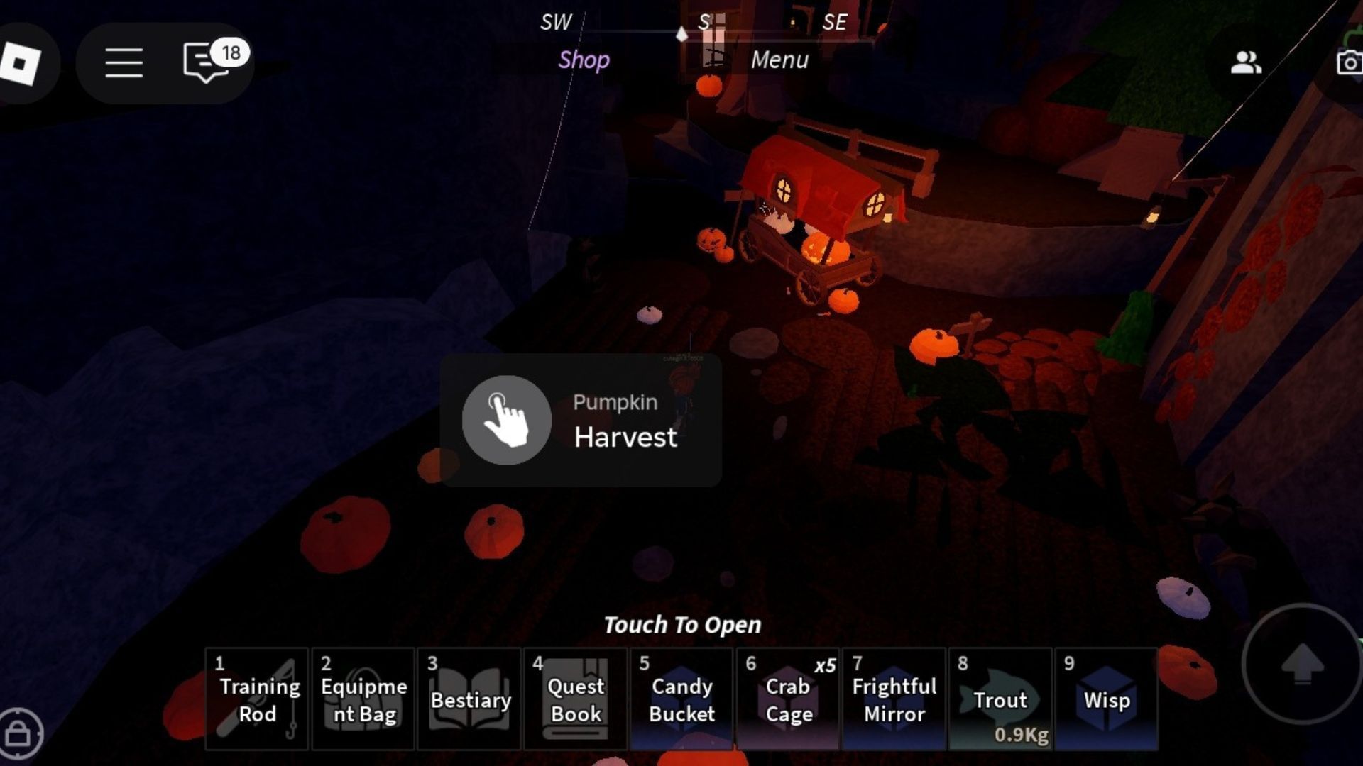 Fisch is a fishing game featured in the Roblox Halloween Spotlight event. The Roblox title allows players to cast their fishing line into the sea and catch rare and big fish. By completing the quests with Pumpkin King, you can receive a Rune and Key as rewards. These are essential tokens used to progress through the Halloween Spotlight event.