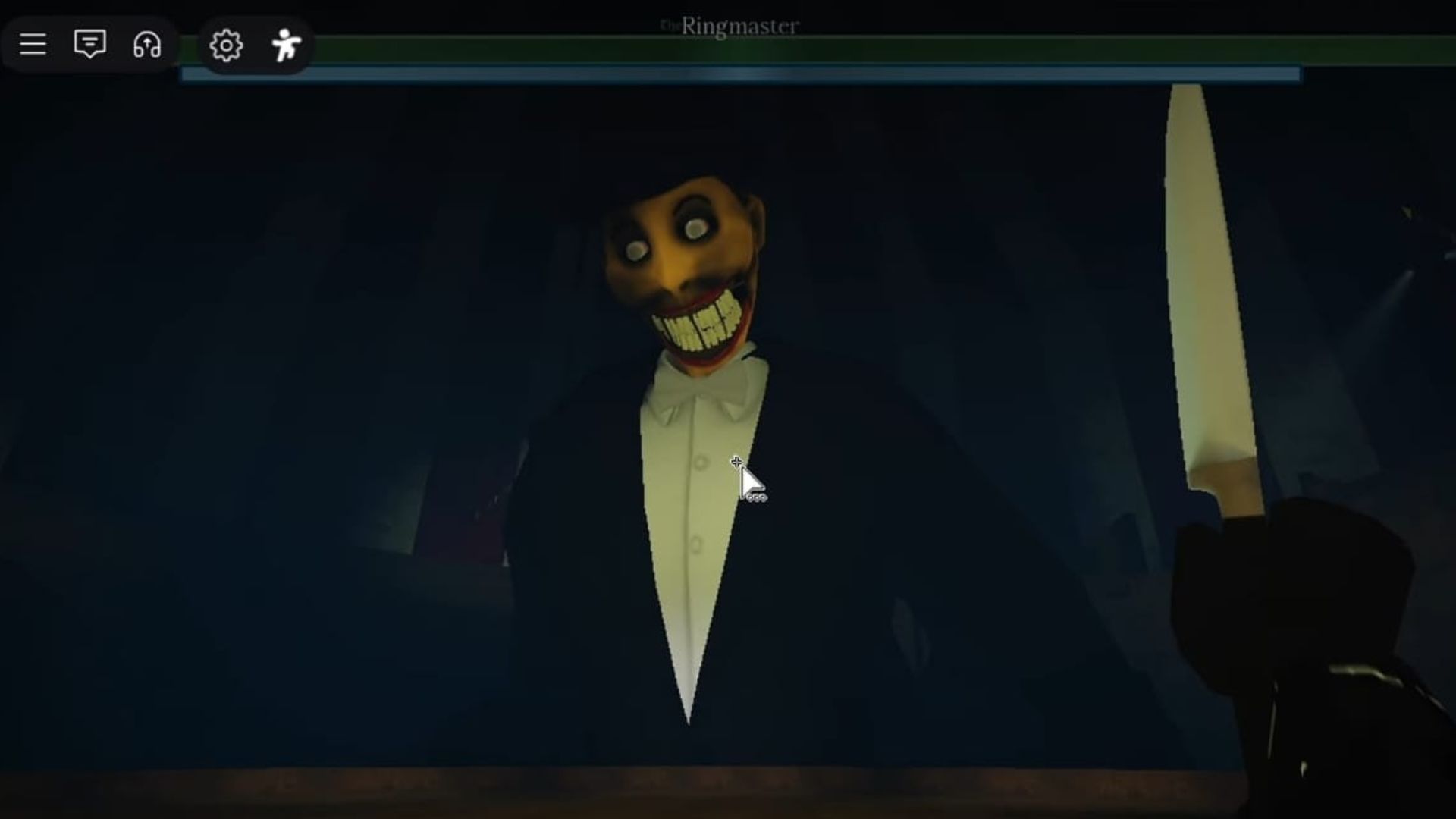This is the final part. A gigantic-sized Ringmaster appears like an Elden Ring boss. Stay away from the highlighted red area to avoid its attacks, and when the boss fails to hit you with his hand, start cutting at it with your knife.