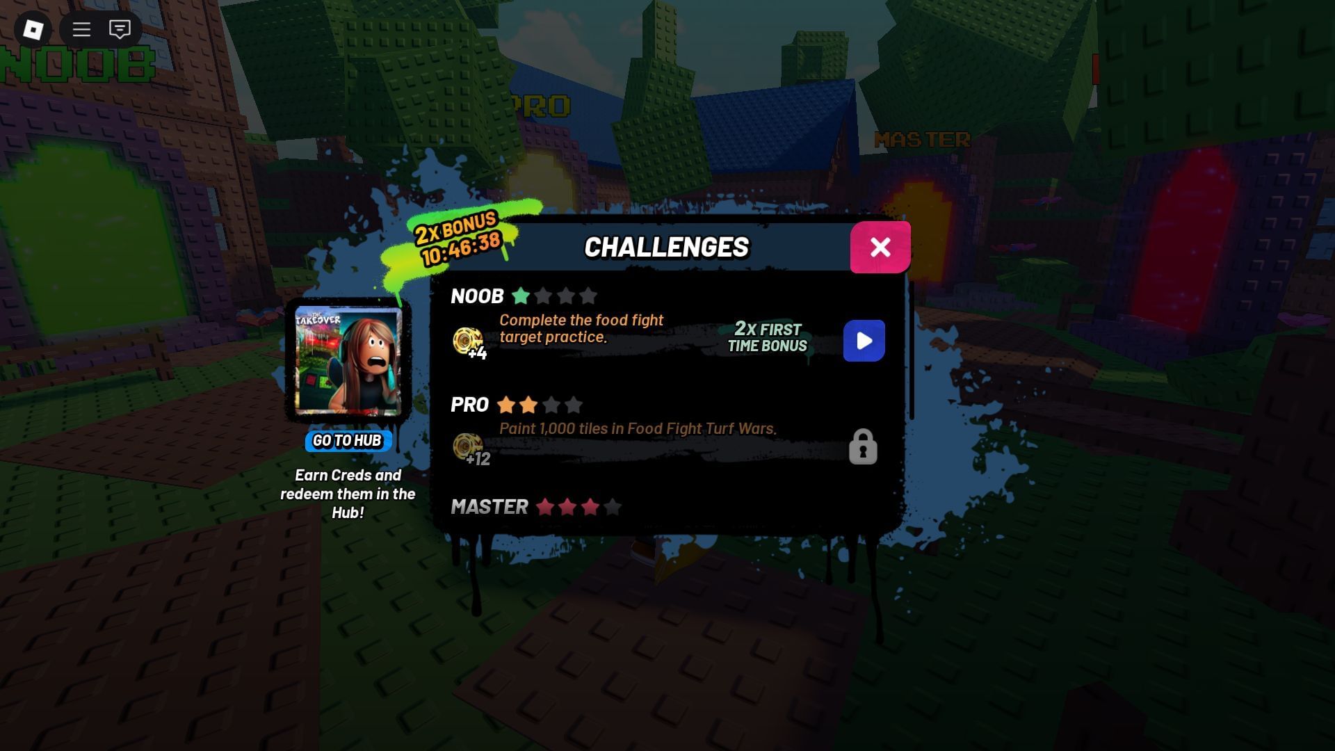 - Pro: Paint 10,000 tiles in Food Fight Turf Wars. Grants The Takeover - Pro badge as a reward.