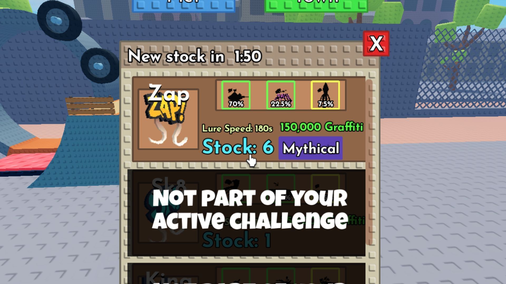 After obtaining Graffiti, you can use the event currency to purchase the Zap, Skt8, and King baits. The Graffiti Merchant NPC has a limited stock of such baits, so you'll need to race with other players to acquire them during the event.