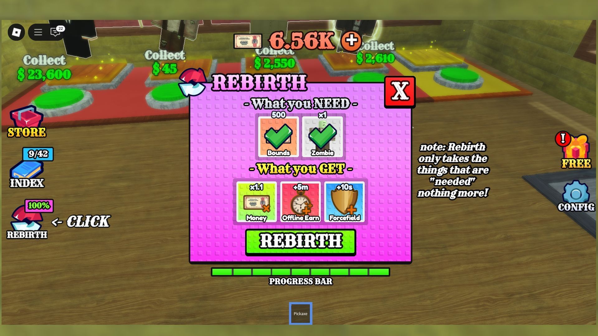 You should also keep an eye on the Rebirth tab. Performing a rebirth increases the free lock's duration.