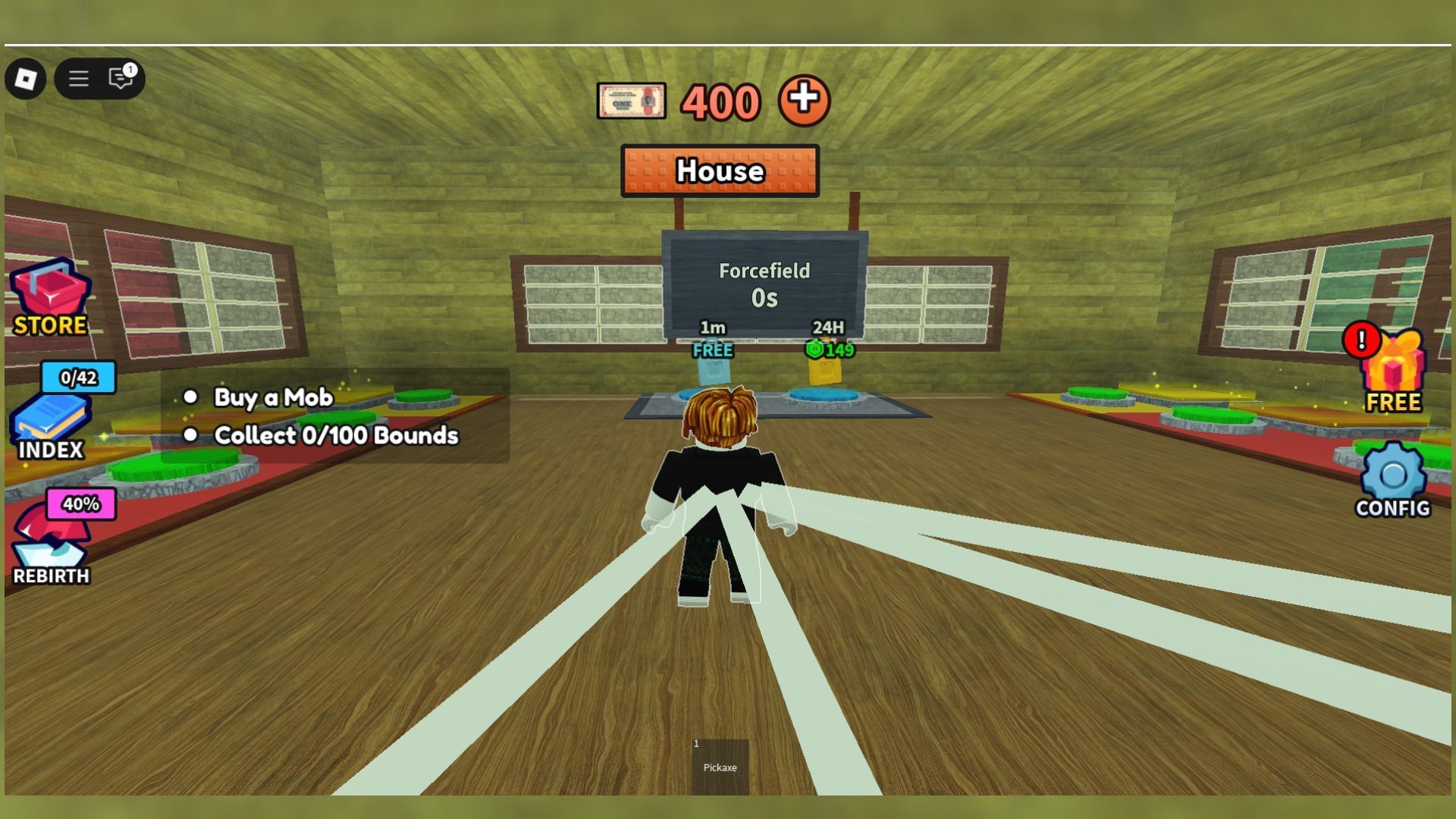 - Mobs: Mobs appear periodically from a tunnel, and you can buy them by spending cash. They take one of the slots in your house and generate revenue. To claim the money, stand on the green button in front of them.