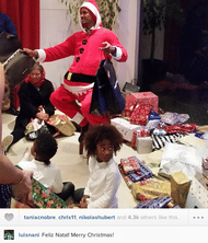 Nani donned the role of Santa Claus this Christmas, as he wore the famous red and white and dished out presents.