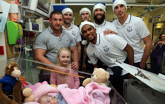 The Toffees put behind their disappointment of being thrashed 3-0 by Southampton to spread a bit of festive cheer and visited the children at Alder Hey hospital. Jagielka, Baines, Eto'o, Mirallas and Howard were all in attendance.