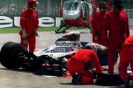 In 1994, Senna decided to leave McLaren and joined Williams, replacing Prost on the team. Of course, Seena's death wasn't the only one that marked a gory weekend at the Marino Grand Prix. During the first practice session, Rubens Barrichello, driving for Jordan hot a kerb and crashed into a debris fence but escaped with nothing more than a broken nose.