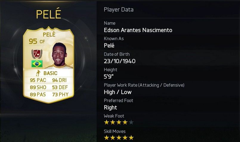 The biggest name ever! The man who is widely recognised as the greatest footballer is present on the FUT legends list and is rated 95 in the game. Even his weak foot has four stars.