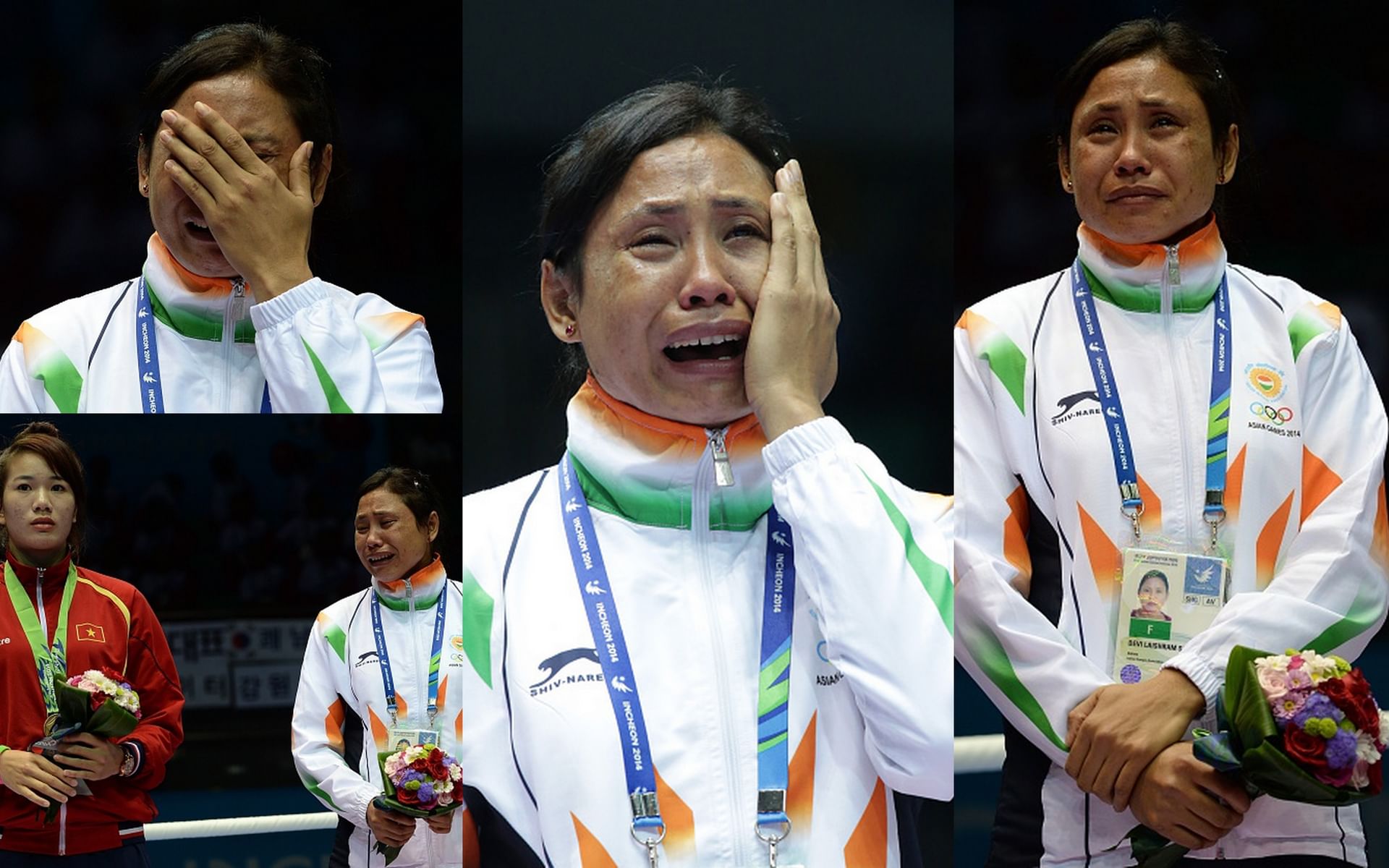 Indian boxer Sarita Devi was denied a place in the final after a controversial decision in the 57-60 Kg category semifinal against South Korea’s Jina Park. The 30-year-old refused the bronze medal during the presentation ceremony and was in tears at not being able to have a shot at gold.