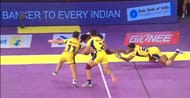 With little support from Tae Deok Eom, Sunil Kumar completed the super tackle and got Patna Pirates back into the contest. Patna won that game by a single point before going on a ten game unbeaten run.