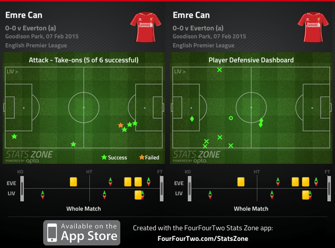 If there was one positive from the game that Rodgers could take home, then that was Emre Can’s performance. Playing alongside Martin Skrtel and Mamadou Sakho as the third center back, the German put on a good defensive display by making timely challenges. Can was the highest rated outfield player of the match.