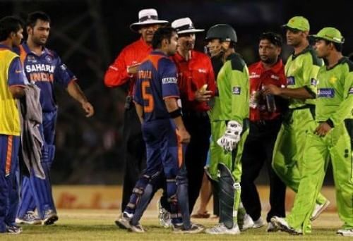 Even Sachin Tendulkar exchanged a few words with Shoiab AkhtarThe high-octane cricket rivalry between India and Pakistan has given plenty of moments to savour not only for fans in the respective countries, but all around the cricketing globe. While many of these moments have been triggered by great contests between bat and ball, some of the others have been a result of verbal and at times, even physical altercations between players from both sides.Although things have turned a bit ugly on a number of occasions, these incidents have always been considered to be an integral part of this rivalry of legendary proportions. Let’s take a look at 6 conflicts on the cricket field during India-Pakistan matches: