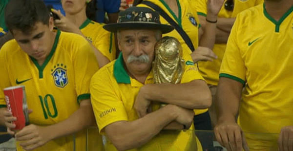 The above image will undoubtedly remain immortal as one of the lasting memories of the 2014 World Cup – a Brazilian fan crying, while clutching a World Cup replica trophy.