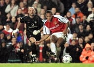 Arsenal striker Thierry Henry scores past Manchester United goalkeeper Fabian Barthez