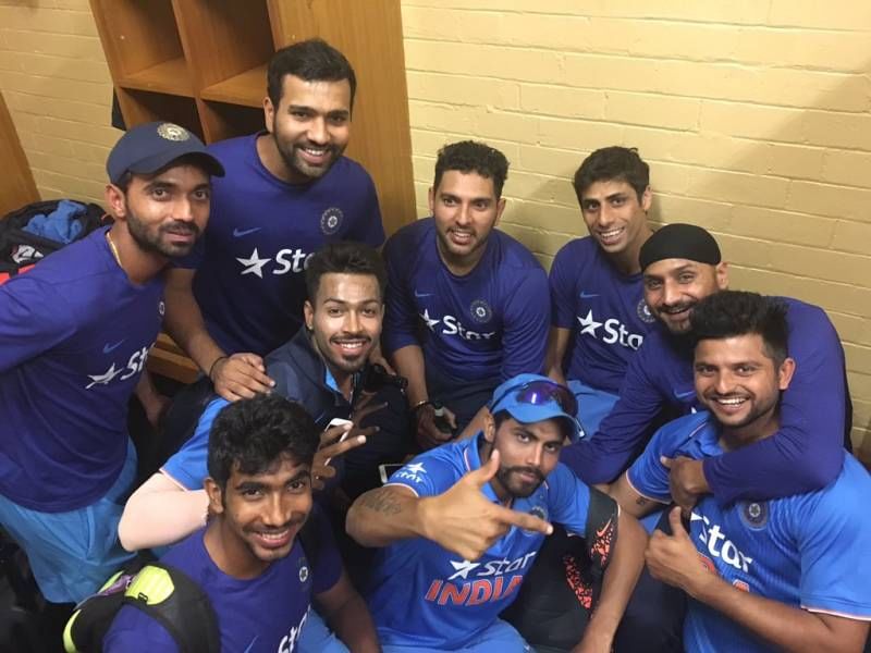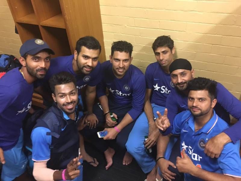 Finisher Suresh Raina posted some pictures on his Twitter handle of his team’s dressing room celebration. What a victory it was, indeed, from the team India, they totally outclassed the Australian team in all the departments.