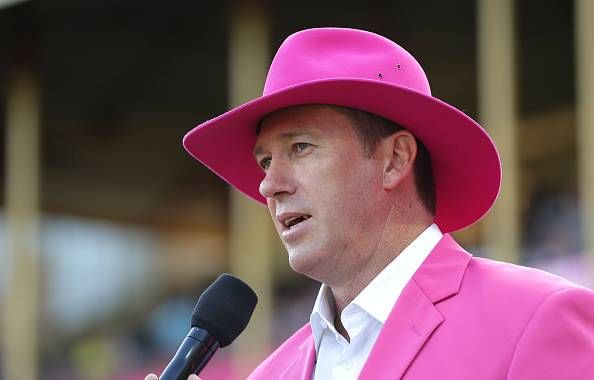 Glenn McGrath getting interviewed prior to the final Twenty20 match between Australia and India at Sydney Cricket Ground. It was the 'Pink Day' in Sydney today, the day which is used to raise money for breast cancer awareness in memory of Jane McGrath, late wife of Glenn McGrath, who died in 2008 after a long battle with breast cancer.