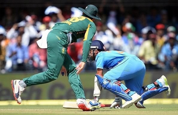 Ajinkya Rahane, who was the only Indian top order batsman who posted a big score, seen colliding with Farhaan Behardien. Rahane departed in the 23rd over, putting his team into a lot of trouble.