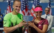In the 2014 US Open, Sania and her mixed doubles partner, Brazils Bruno Soares, ware seeded one in the mixed doubles draw. At the culmination of the tournament, she was seen squealing and jumping into the arms of her partner Bruno, when this duo clinched the US Open mixed doubles title by defeating Abigail Spears of America and Mexicos Santiago Gonzalez.