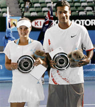 Sania won the mixed doubles title at the Australian Open in 2009 with Mahesh Bhupathi. They beat the French and Israelian pair ofNathalie DechyandAndy Ram, 6-3, 6-1.