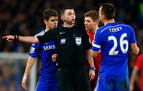 Not only did Michael Oliver fail to punish Diego Costa for stamping on two Liverpool players, but Jordan Henderson and Lucas Leiva were also very lucky to stay on the pitch. Oliver chose to show Henderson a yellow card for a touch on Eden Hazard, but refused to show him a second for a clear handball just outside the Liverpool penalty box.