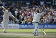 Ponting brought in a silly point and a leg gully. Warne moved from over the wicket to around the wicket. Tension was high, everybody held their breath. Warne delivered the ball. It was a poor delivery, pitching way outside off-stump. Strauss breathed a sigh of relief and offered a pad, looking to tap it away on the off-stump. He also covered the off-stump with his back leg, just in case.