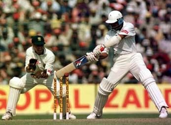 The only completed match between the host nation and the Aussies was played at the Chinnaswamy Stadium in Bangalore. The team from Down Under put 215 on the board helped by their skipper Mark Taylor’s 105. As was the case in those days, Sachin Tendulkar was waging a lone war while wickets fell at the other end. When he got out just 12 short of a hundred and India reeling at 164 for 8, the Bangalore crowd were in a stunned silence.