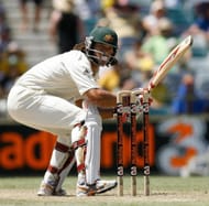 After pitching on the fifth stump the ball swung away, leaving the Australian in a dilemma. With his team yet to open their account, Langer committed half-heartedly to a drive before pulling out midway.