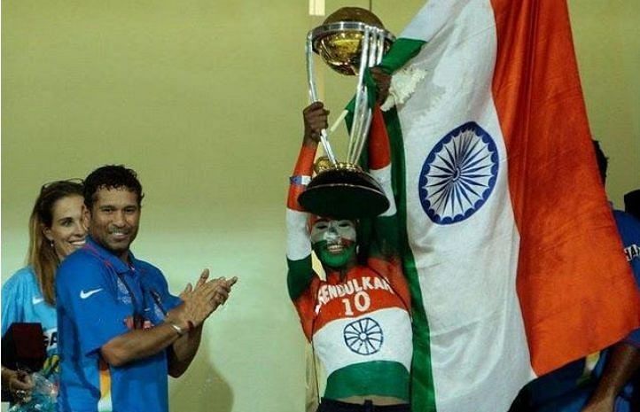 His undying devotion was rewarded as Tendulkar called him to the Indian dressing room and had their photo taken with the world cup trophy.