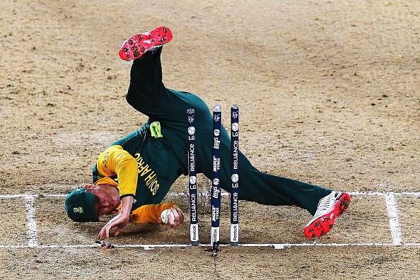 Here, he misses a run out, which along with a dropped catch,all but cost the Proteas their chance of making it to their first World Cup final.
