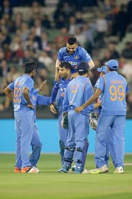 He hit two fours and a six in the rest of the over, and scored 62 runs off the remaining 28 balls that he faced – taking India well past their initial target of around 150.