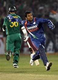 With 2 runs needed to tie the game, Parnell scampered across for a second after he played the final delivery to third man, only to be excellently intercepted by Sreesanth, who ran out his opposite number, thus ensuring an enthralling one run win for Dhoni’s boys.