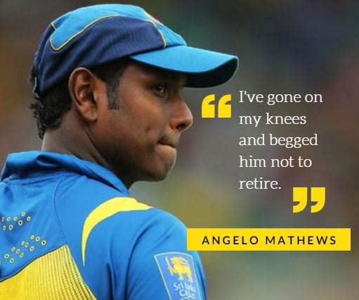 Sri Lankan skipper Angelo Mathews made this famous emotional quote just after Kumar Sangakkara officially announced his retirement from all forms of international cricket. Sangakkara announced his retirement from international cricket after the second match of the three-Test series against India in August 2015.