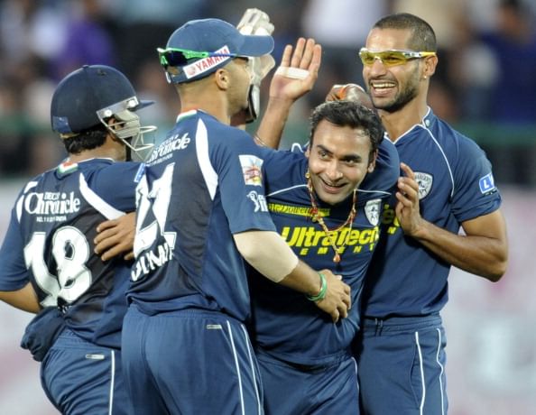 Match came into the final over with 15 needed off the last 6 balls and calm Mishra was brought into the attack. He struck in first ball itself, flat hit by Teja found long-off fielder. And then in a hurry for runs, next batsmen RP Singh and P Ojha lost their wickets hurriedly in the very first ball they played giving a hat-trick to Amit Mishra. DD won the match by 12 runs. The leg-spinner finished with 5 wickets by giving away just 17 runs in 4 overs.