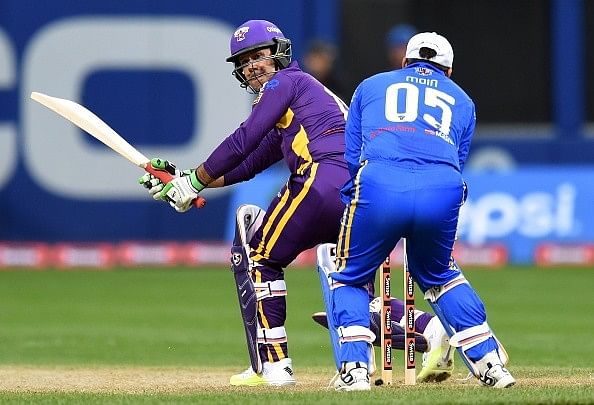 The inventor of the Doosra came back to challenge the Little Master again, sixteen years later. The spinner, who last played in a competitive match in 2012, captured the wicket of Tendulkar, sliding the ball past his defences. He came back to dismiss Jayawardene in the 11th over, leaving the Warriors tottering at 88-4. In a match that resulted in a combined 467 runs, Mushtaq bowled three overs at an economy of 4, the lowest from either side.